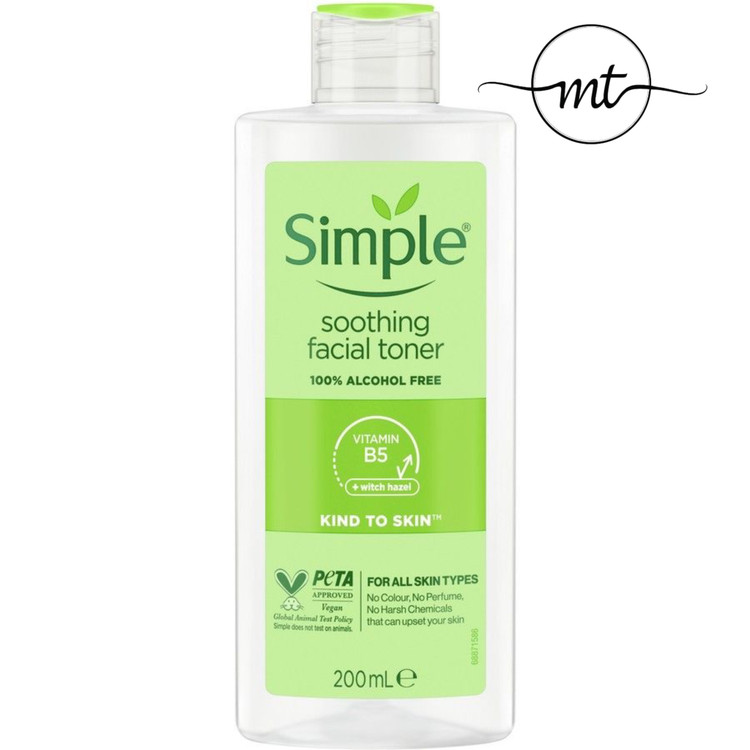 تونر سیمپل از لاین Kind To Skin مناسب پوست های حساس و دارای حجم 200 میلی لیتر است.استفاده از این محصول می تواند علاوه بر کمکی که به تنظیم PH پوست شما می کند، می تواند موجب آبرسانی پوست شود و به تسکین پوست شما نیز کمک نماید. تونر سیمپل مدل kind to skin یک محصول عالی برای کمک به سلامت پوست و پاکسازی آن می باشد که به دلیل عدم استفاده از ترکیبات شیمیایی مختلف مانند الکل و پارابن، برای پوست های حساس مناسب می باشد.