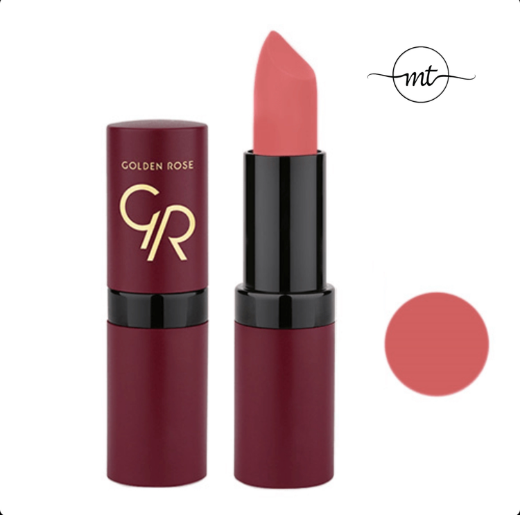 رژ لب ولوت مات از برند گلدن رز، دارای نمایی مات و مخملی است و با داشتن رنگدانه های قوی از پوشش و ماندگاری بالایی برخوردار است و روی لب خشک یا لکه نخواهد شد.