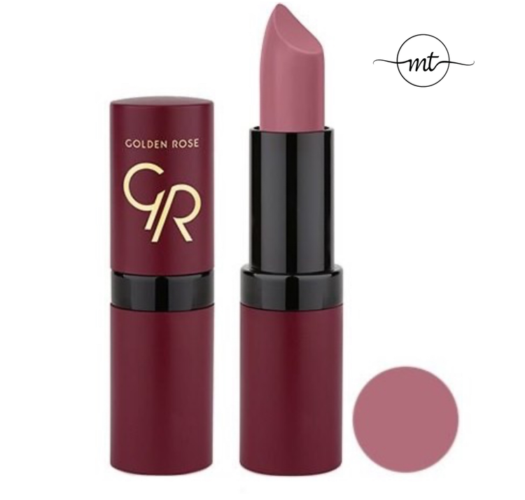 رژ لب ولوت مات از برند گلدن رز، دارای نمایی مات و مخملی است و با داشتن رنگدانه های قوی از پوشش و ماندگاری بالایی برخوردار است و روی لب خشک یا لکه نخواهد شد.