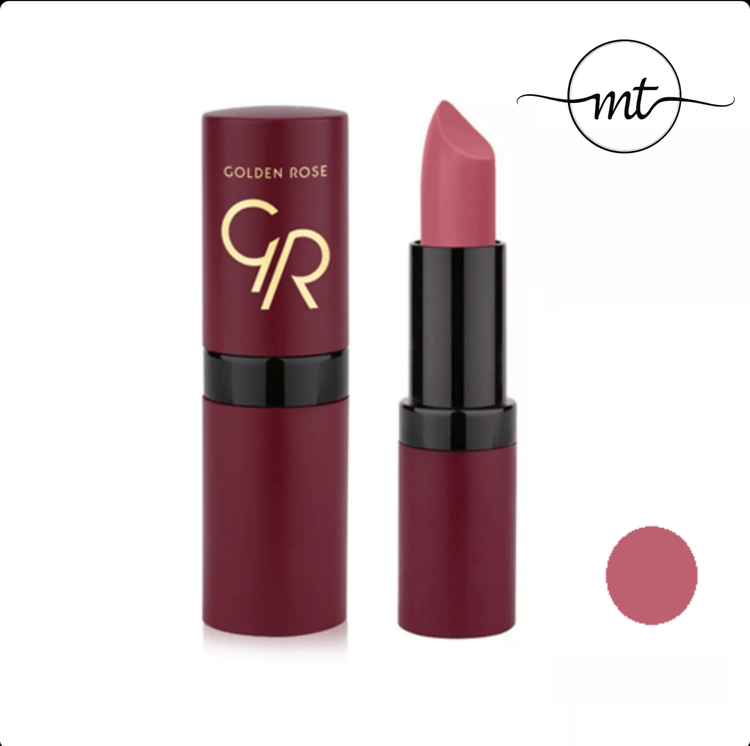 رژ لب ولوت مات از برند گلدن رز، دارای نمایی مات و مخملی است و با داشتن رنگدانه های قوی از پوشش و ماندگاری بالایی برخوردار است و روی لب خشک یا لکه نخواهد شد.