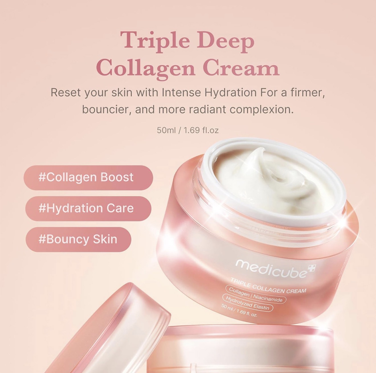 کرم Triple Collagen Cream از برند Medicube، یک کرم پیشرفته است که با فرمولی شامل کلاژن سهگانه، هیالورونیک اسید، نیاسینامید و شیباتر عمل میکند. این کرم با هدف مرطوبرسانی عمیق، افزایش الاستیسیته و سفتی پوست، کاهش لکهها و تیرگیها و تقویت سد محافظتی پوست طراحی شده است.