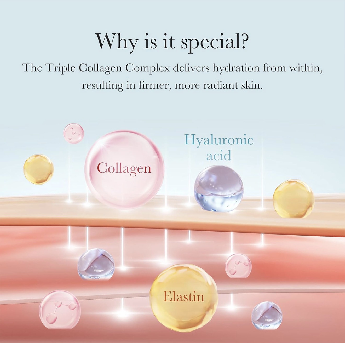 ترکیب سهگانه کلاژن برای تأثیر قابل توجه بر مرطوبکنندگی و سفتی، استفاده از نیاسینامید برای روشنکنندگی و کنترل رنگدانهها، فرمولی که سد پوست را تقویت میکند و محافظت در برابر عوامل محیطی