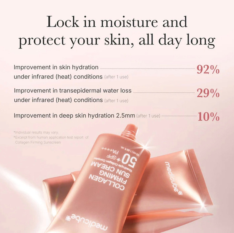 Medicube Collagen Firming Sun Cream SPF50+ PA++++ یک ضدآفتاب چندکاره است که علاوه بر محافظت قوی در برابر آفتاب، خواص مراقبت از پوست را نیز همراه دارد تقویت کلاژن، آبرسانی عمیق و بهبود تُن پوست. این محصول با افزودن چهار نوع کلاژن، کمپلکس آمینو اسیدها، سرامید و هیالورونیک اسید، برای افرادی که هم خواهان محافظت UV و هم بهبود ظاهر پوست هستند، گزینهای عالی است. فرمول آن تُنآپ ملایمی دارد که رنگ طبیعی پوست را بهبود میبخشد و برای استفاده روزانه توصیه شده است.